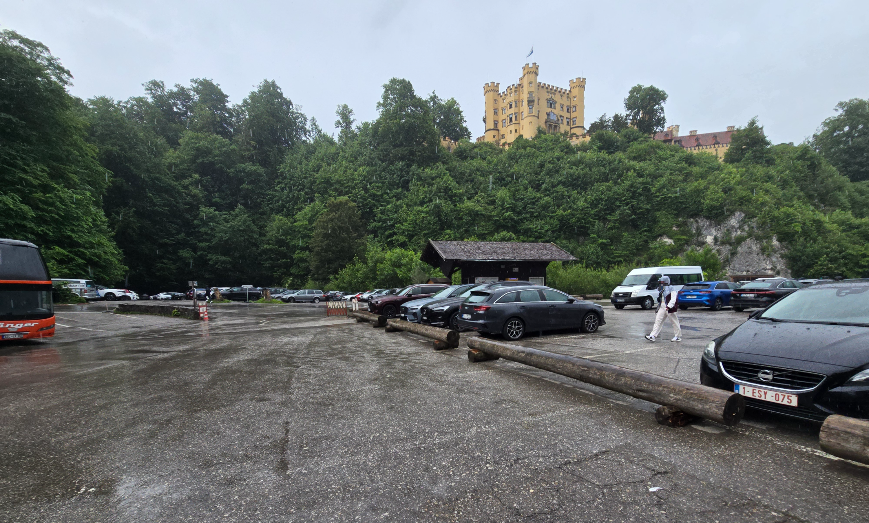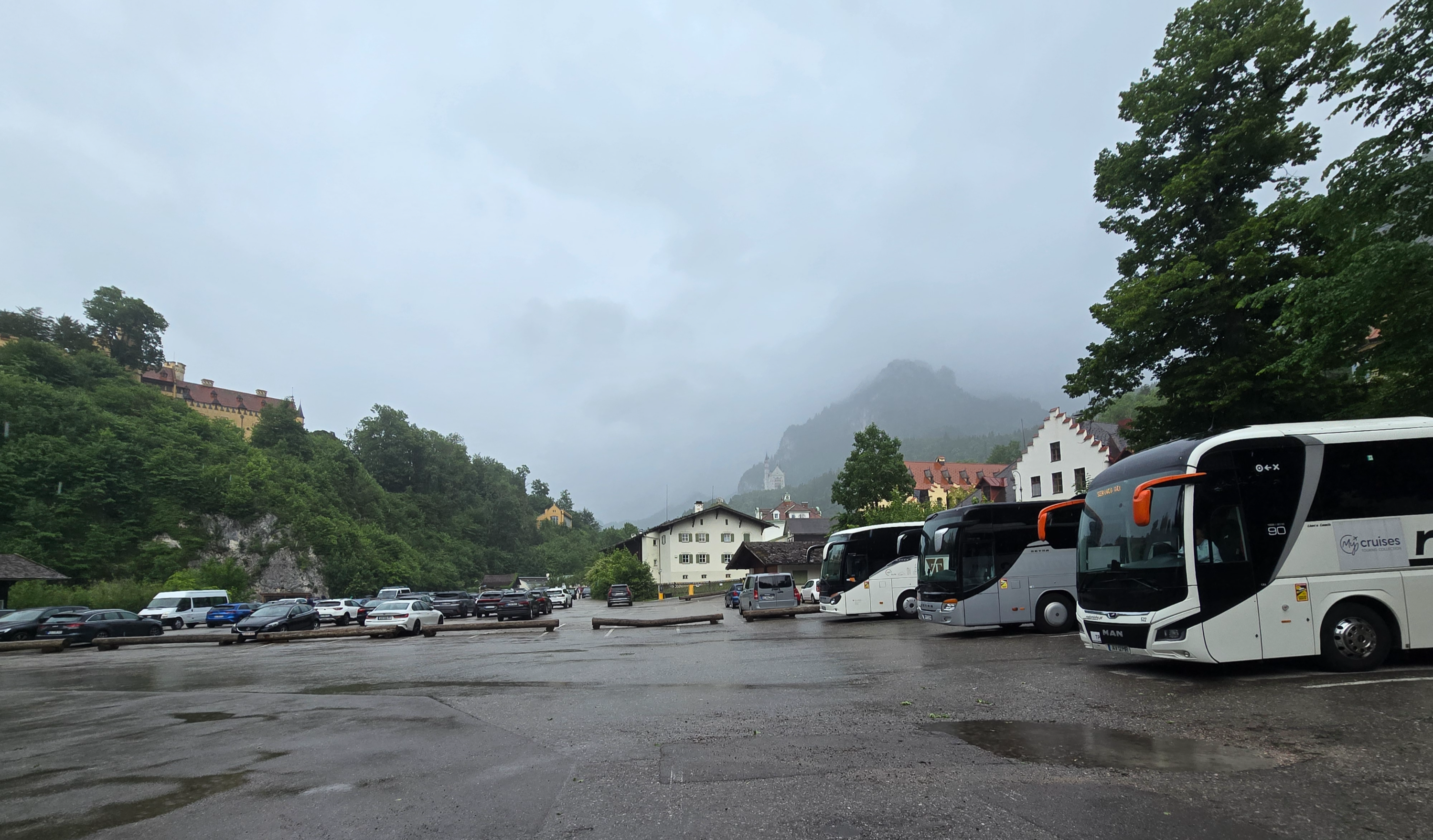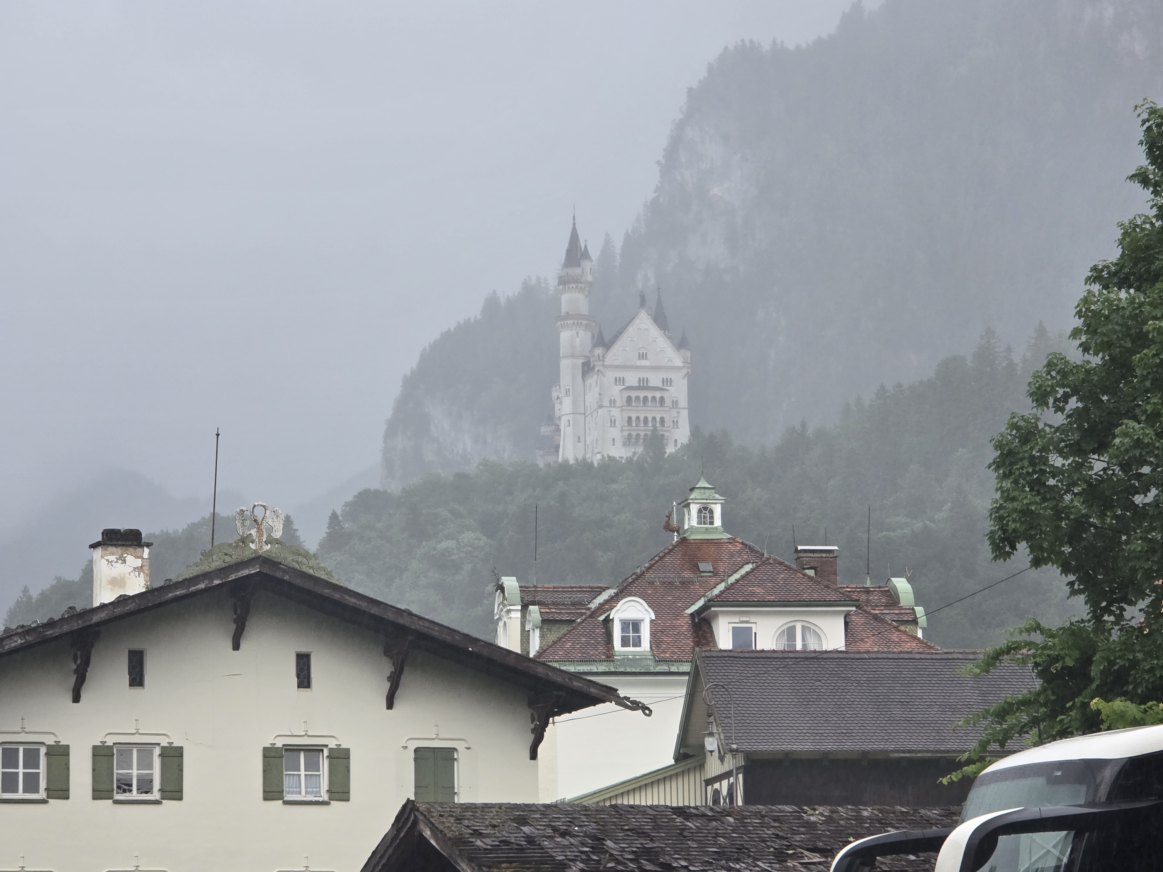 멀리 빗속에 흐릿하게 보이는 노이슈반슈타인 성(Schloss Neuschwanstein)...