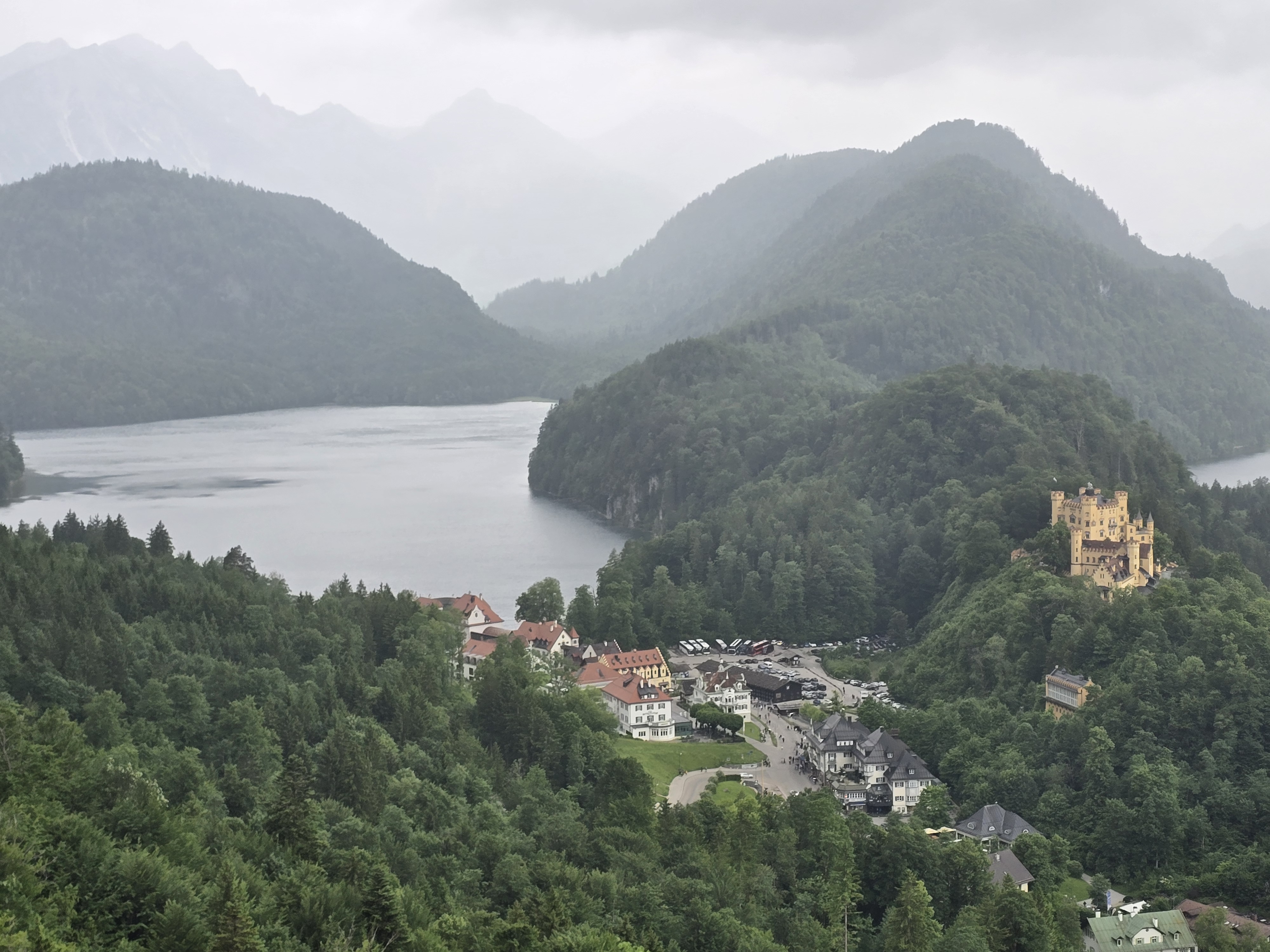 멀리 알프제(Alpsee), 호엔슈방가우 성(Schloss Hohenschwangau), 그리고 내가 주차를 해둔 4번 주차장이 보였다.