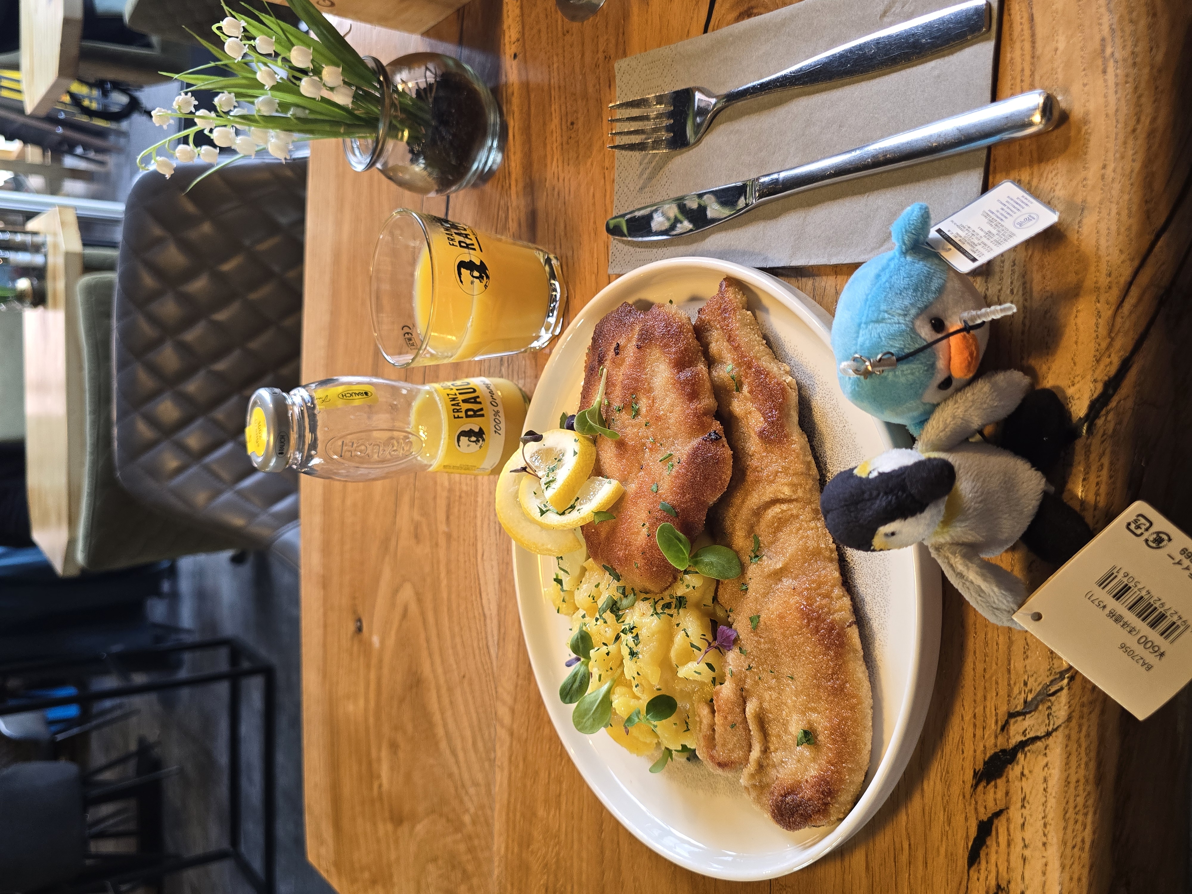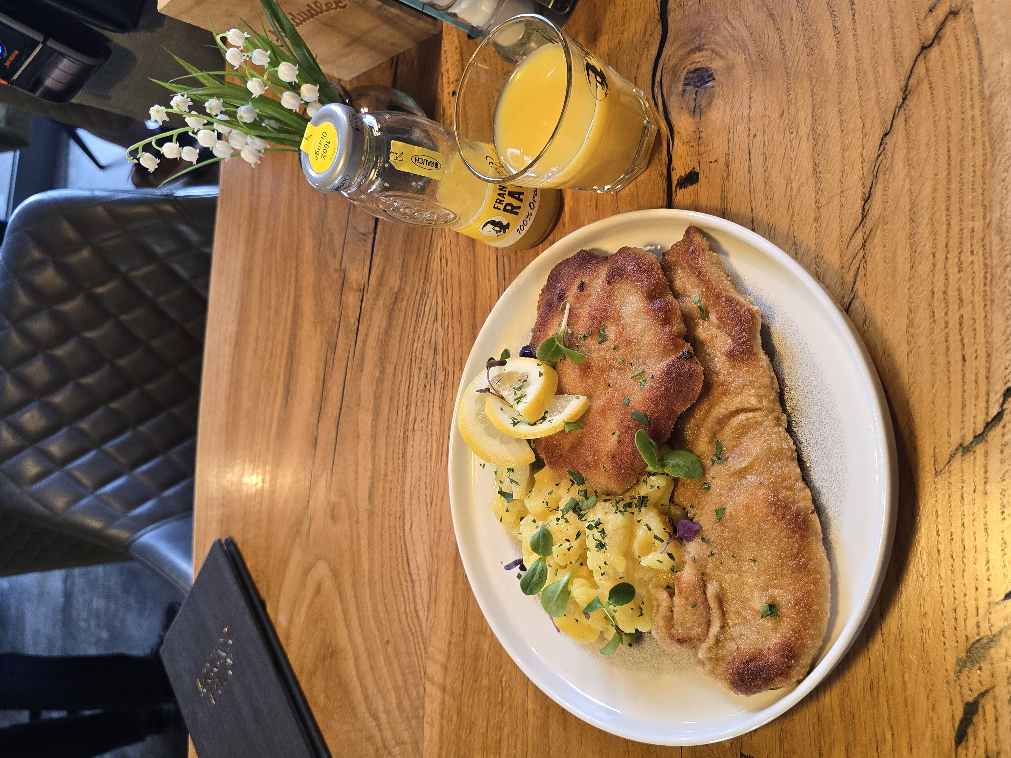 Wiener Schnitzel in Butterschmalz gebraten(정제 버터에 튀겨진 비너 슈니첼)을 선택했다.
