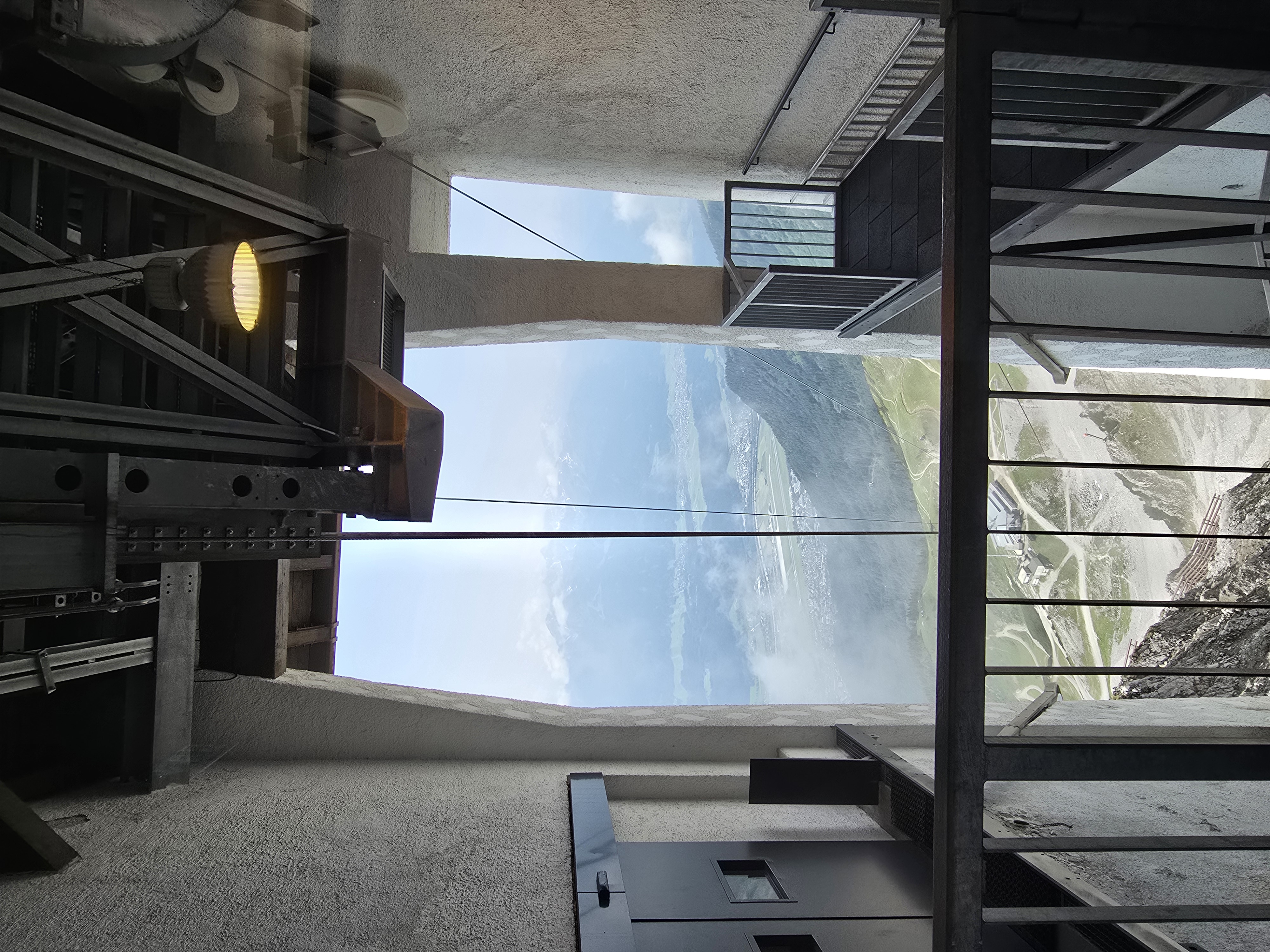 올라온 승객들이 내린 뒤, 케이블카에 탑승했다.