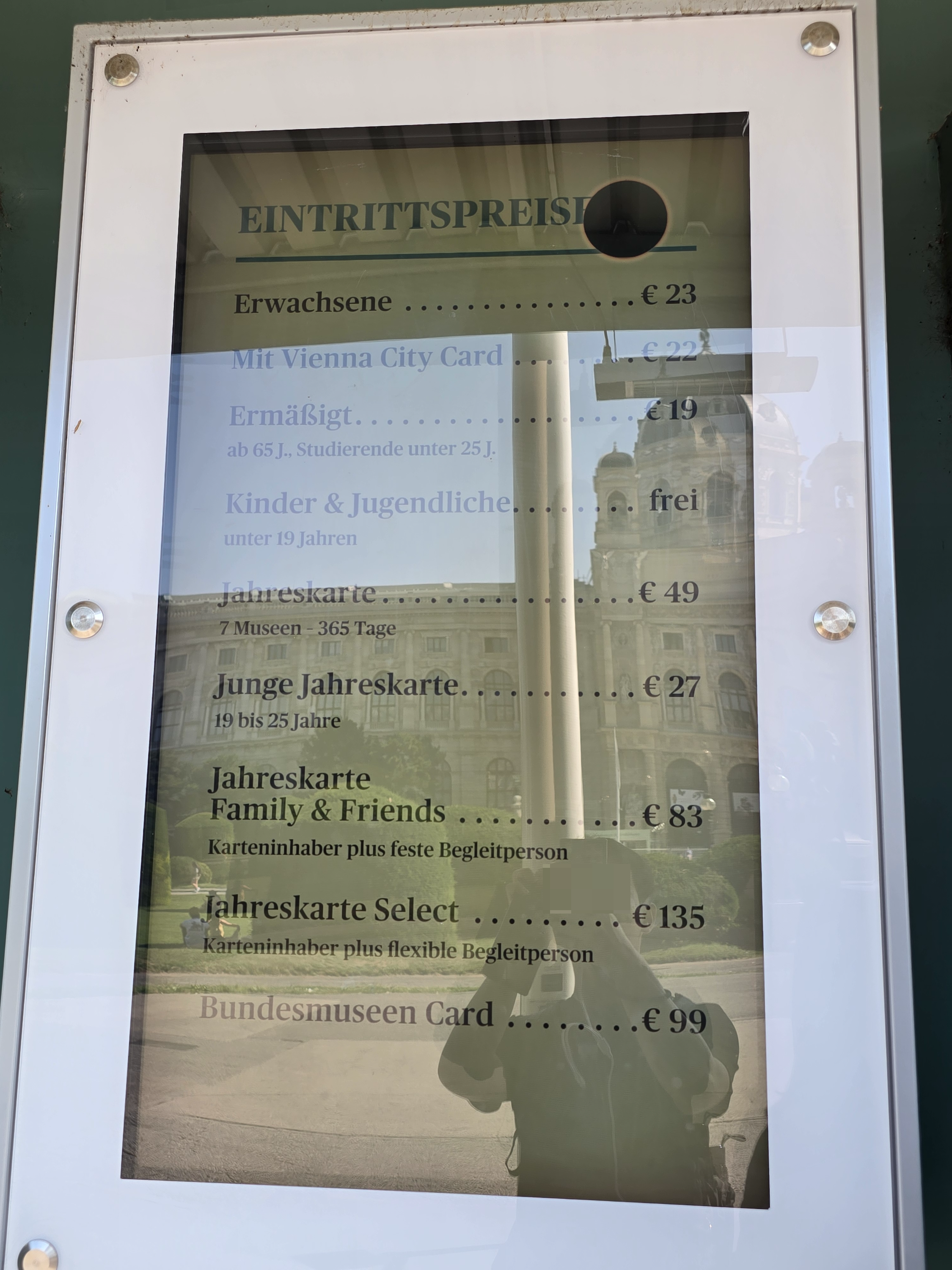 독일어로 된 가격표.