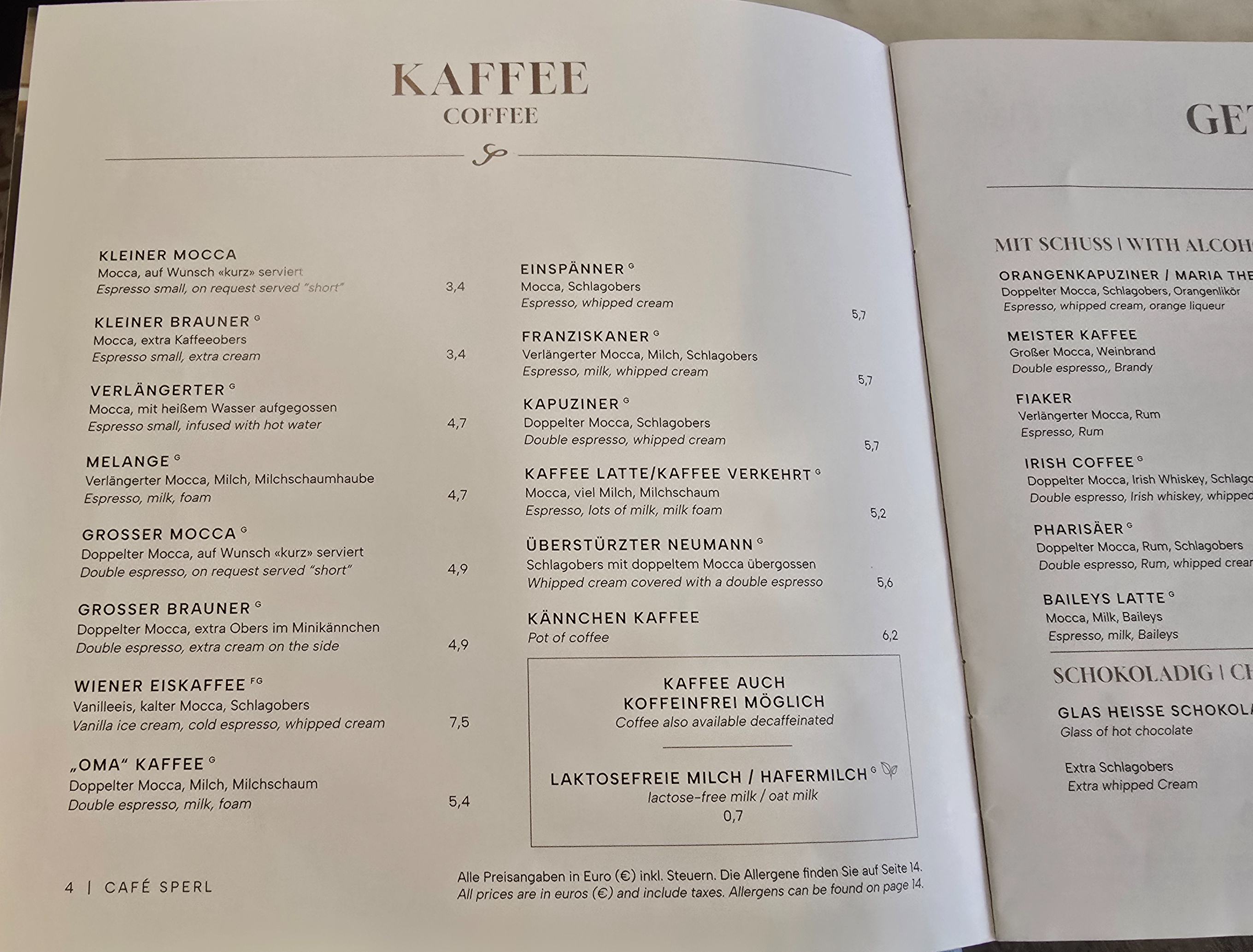 소다의 가격은 4.80 유로, 내가 주문한 아인슈패너(EINSPÄNNER)의 가격은 5.70 유로.