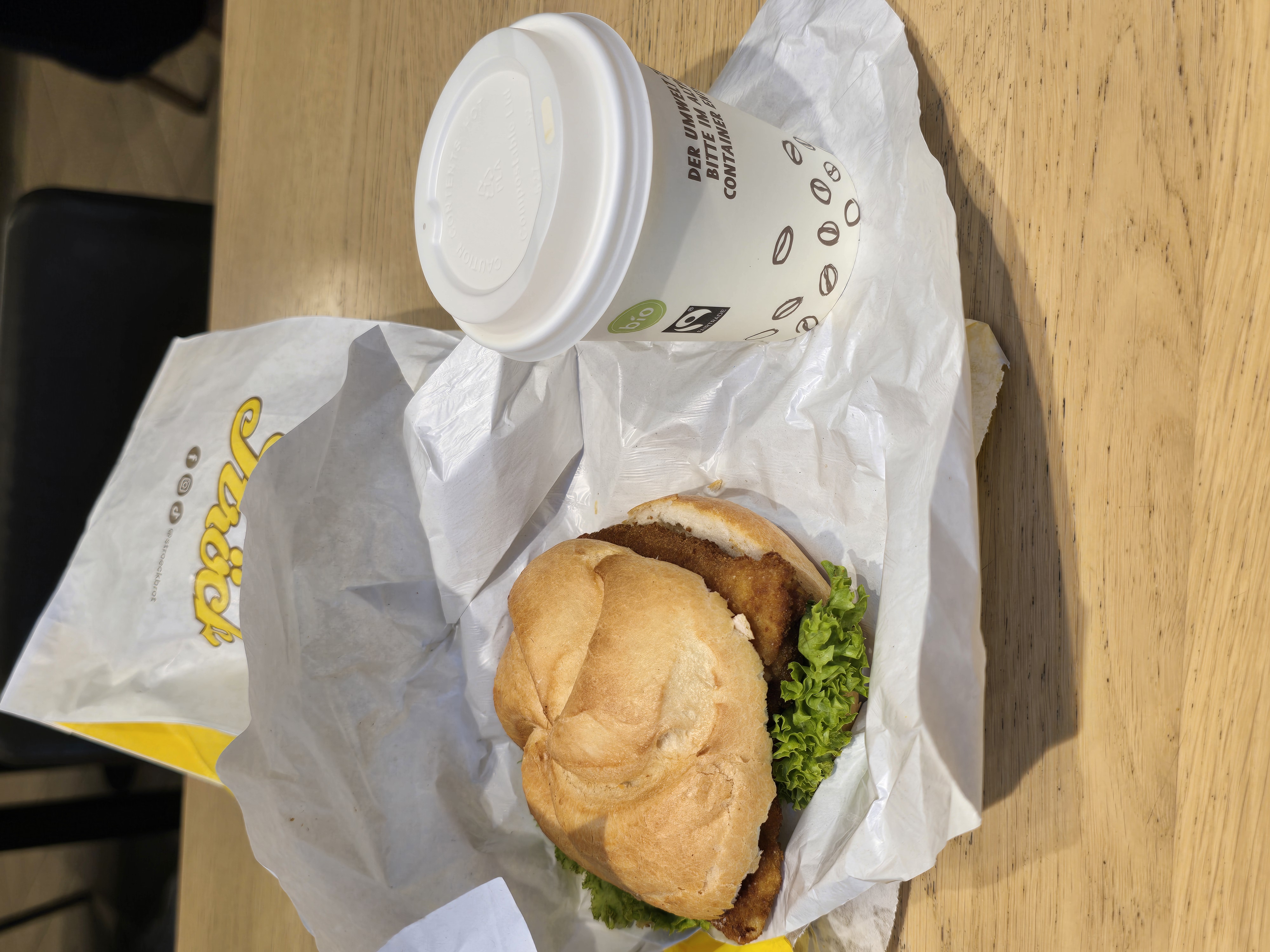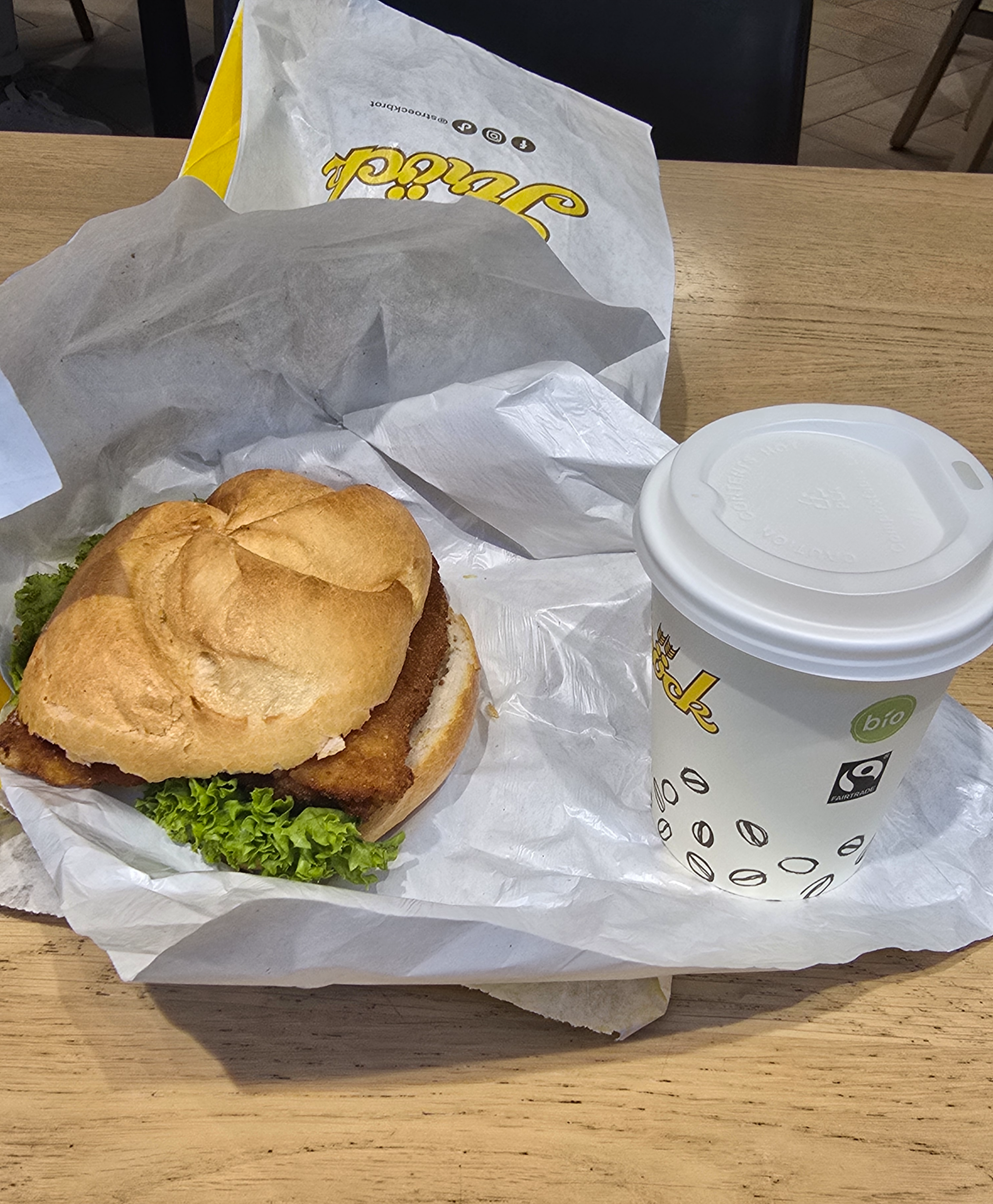 커피와 함께 휘너슈니첼제멜(Hühnerschnitzel-semmel)을 먹으니 맛있었다.
