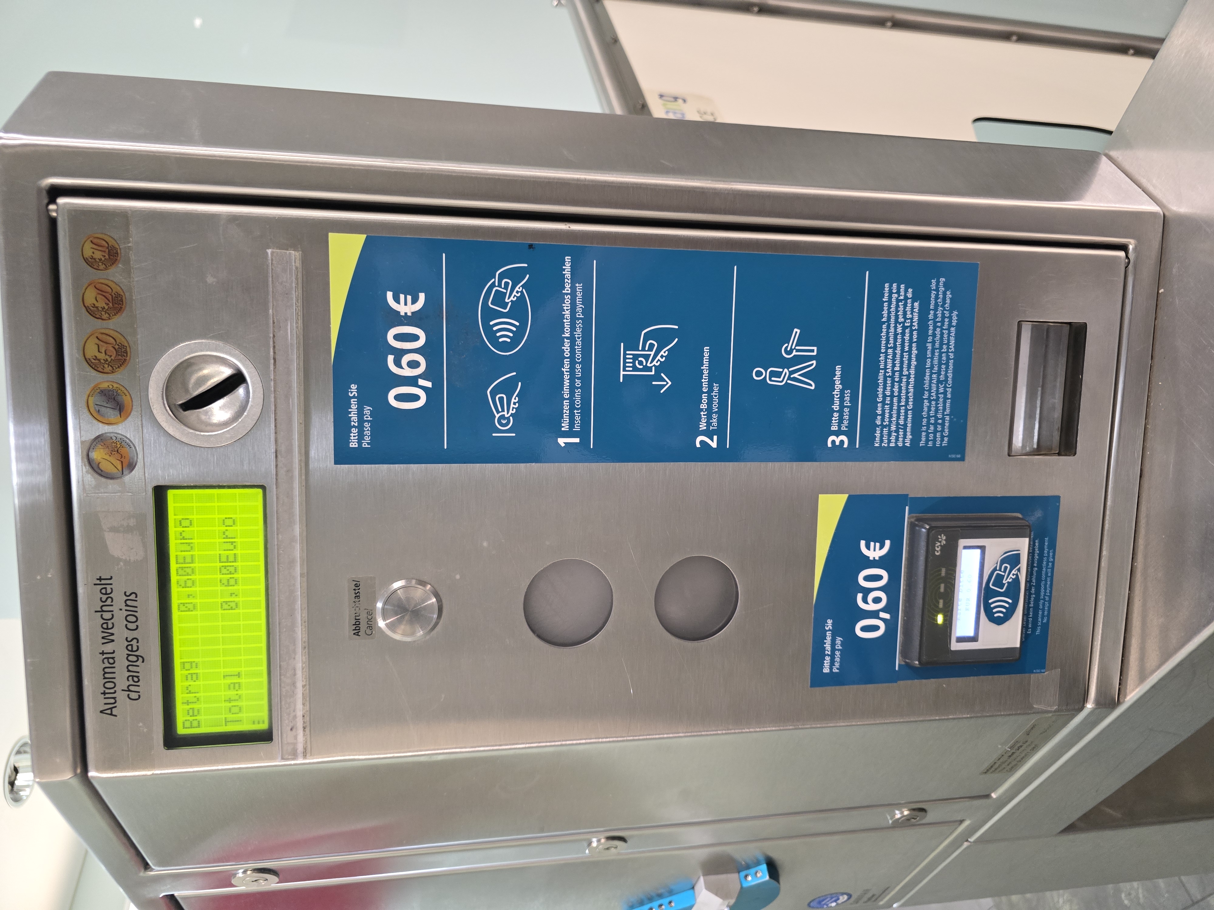 역 안의 화장실 이용료는 0.60 유로였다.