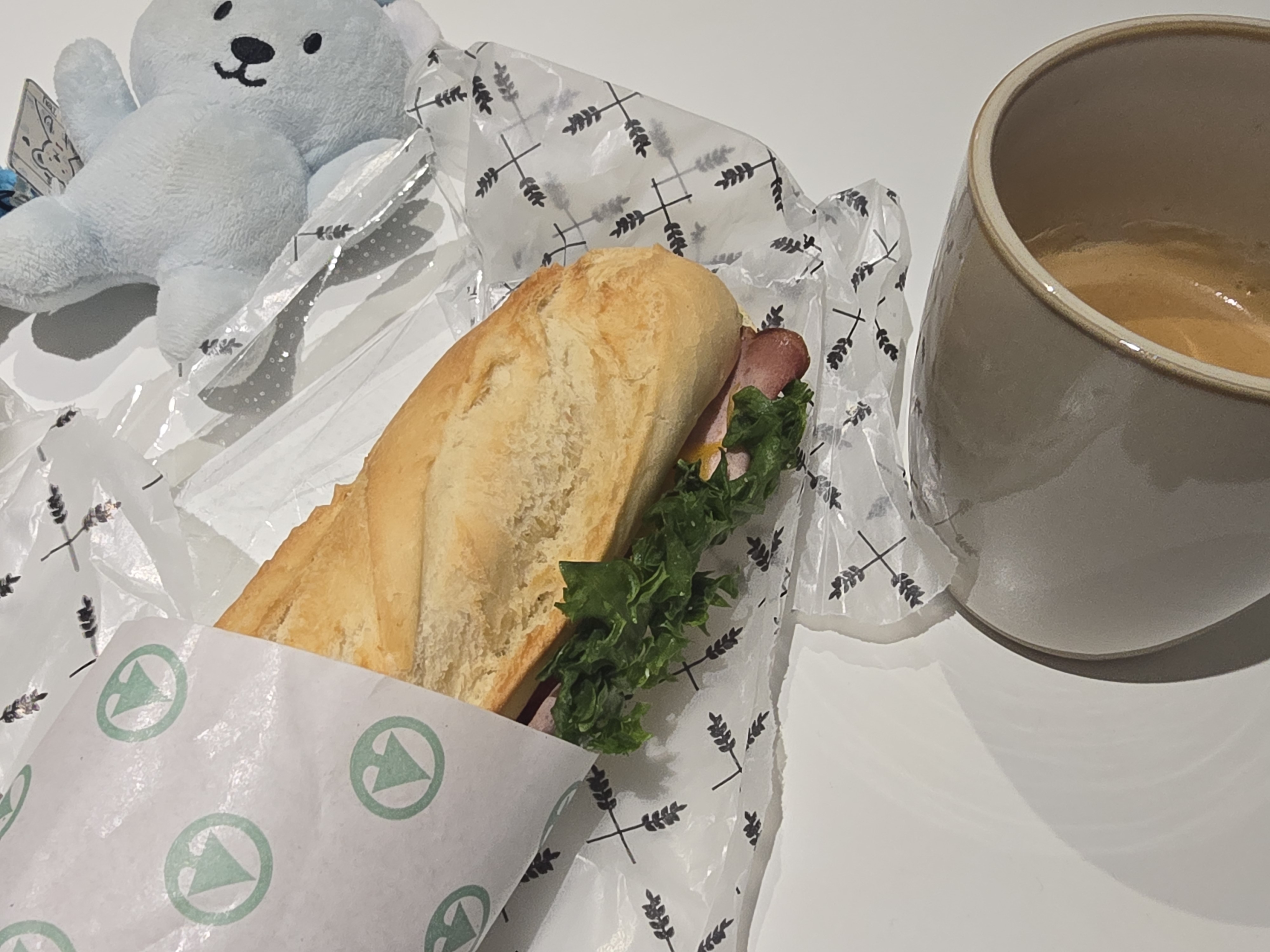 전날에 산 샌드위치, 전날에 훔윰(Hum yum, هم يم)에서 먹고 남은 빵, 숙소에 있던 캡슐커피로 아침식사를 했다.