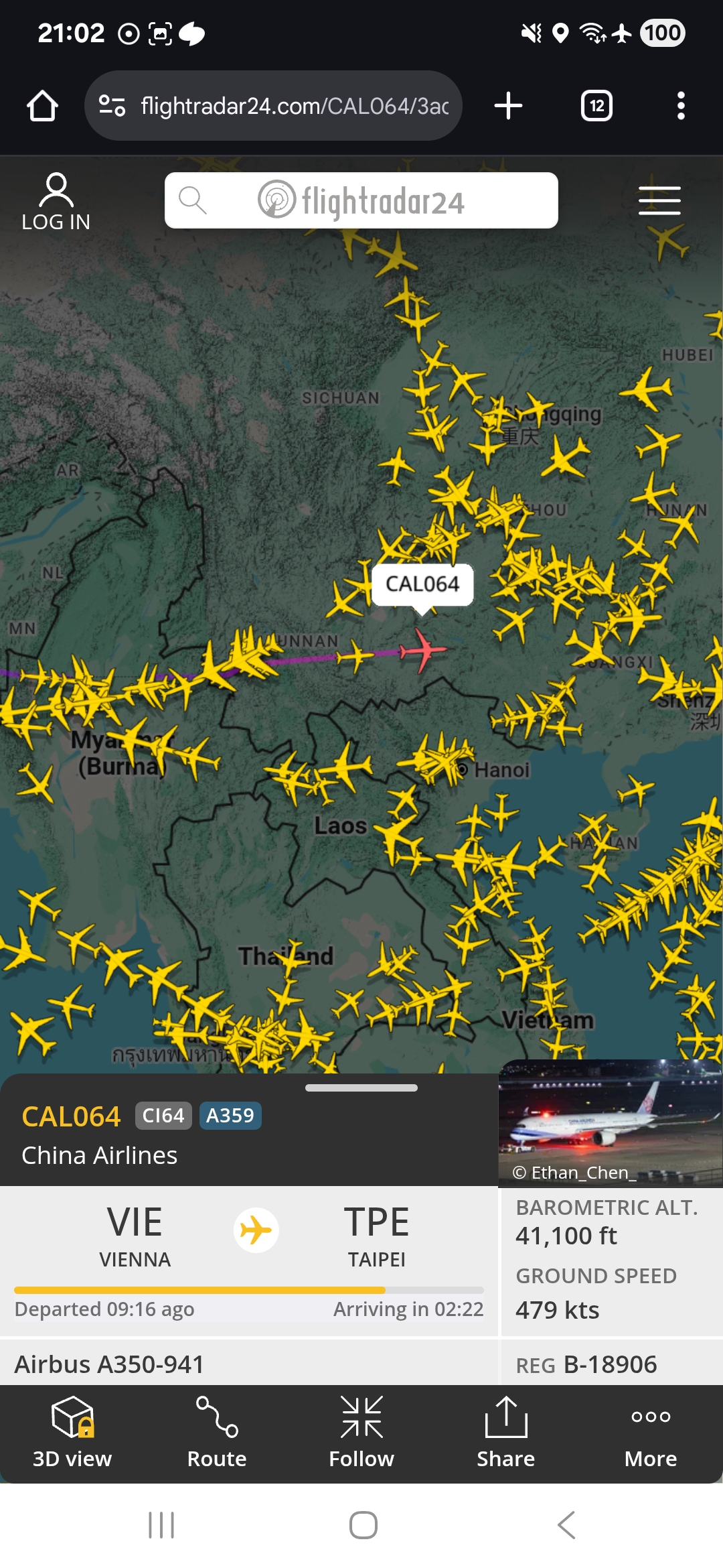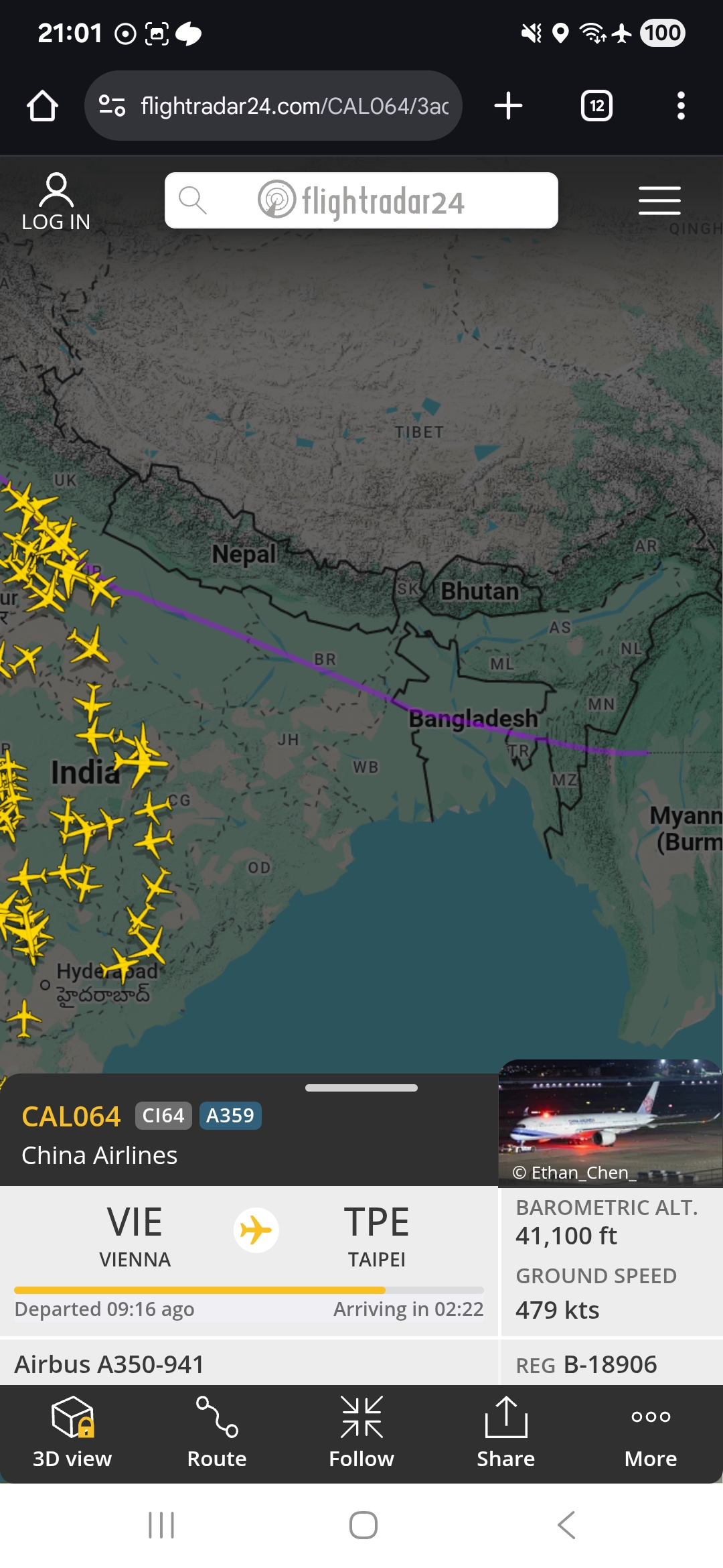 flightradar24에 접속하여 내가 탑승한 비행기의 위치를 실시간으로 조회했다.