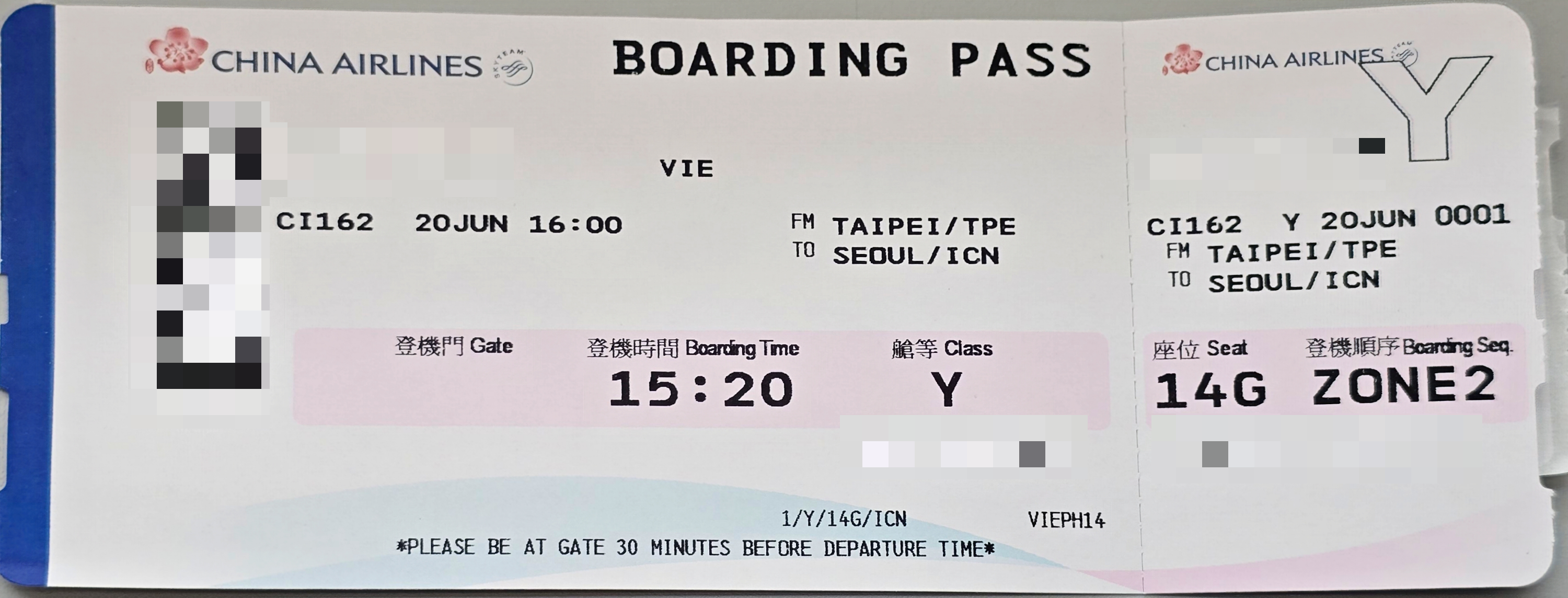 이후 6월 20일 16시에 타오위안 국제공항(桃園國際機場)에서 CI162 비행기를 타고, 19시 35분에 대한민국 인천국제공항에 도착하는 일정이다.