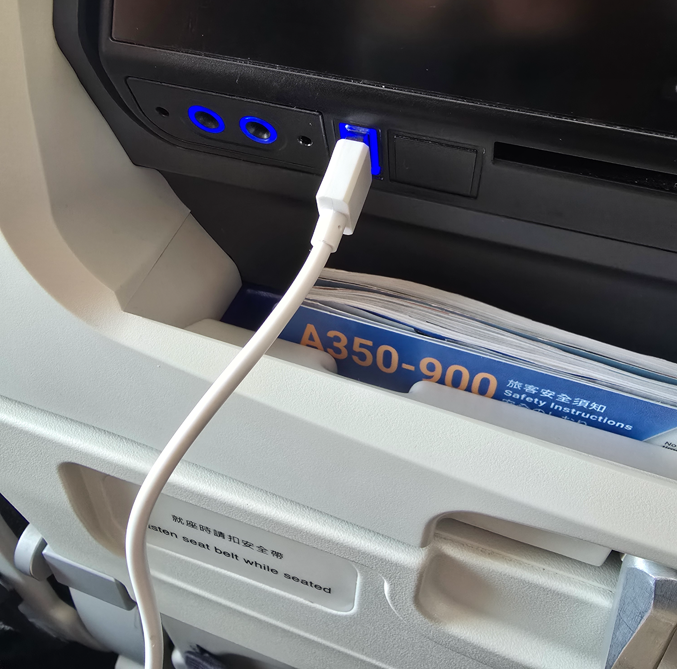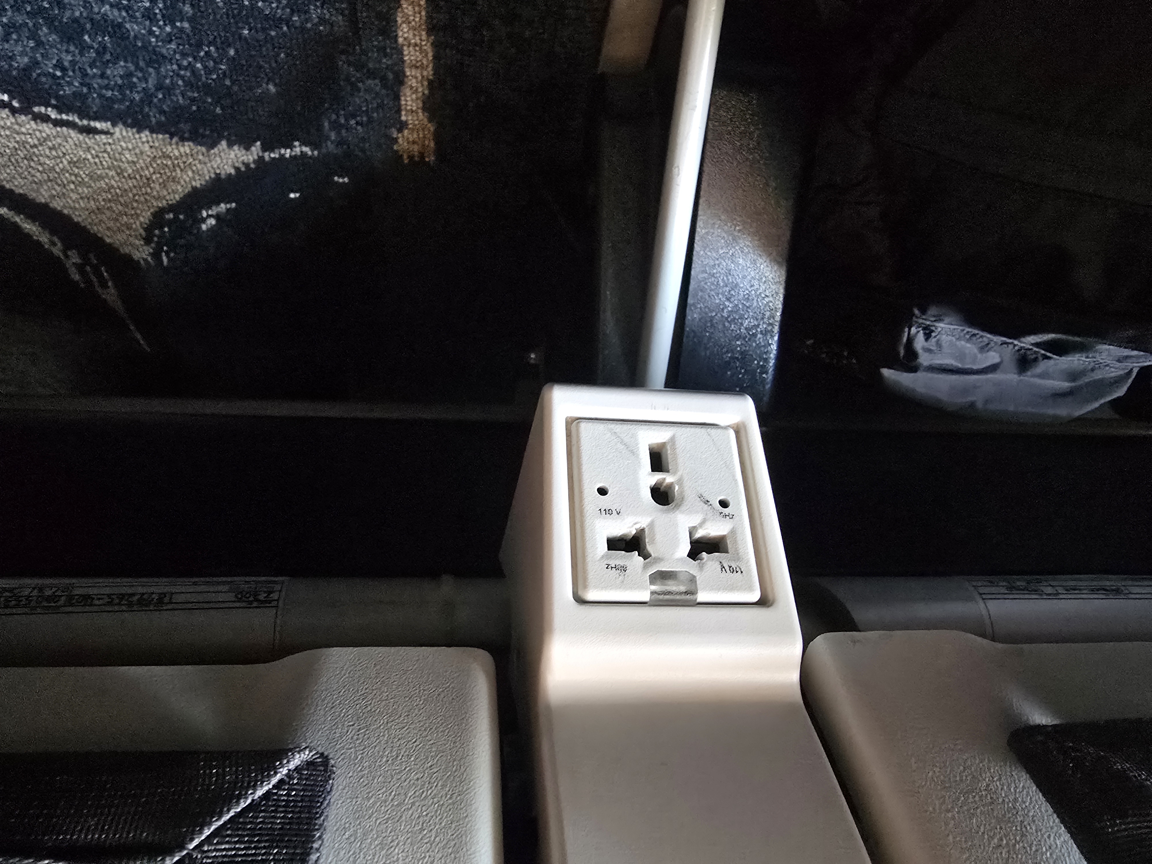 좌석 하단에 전원 소켓이 있었다.