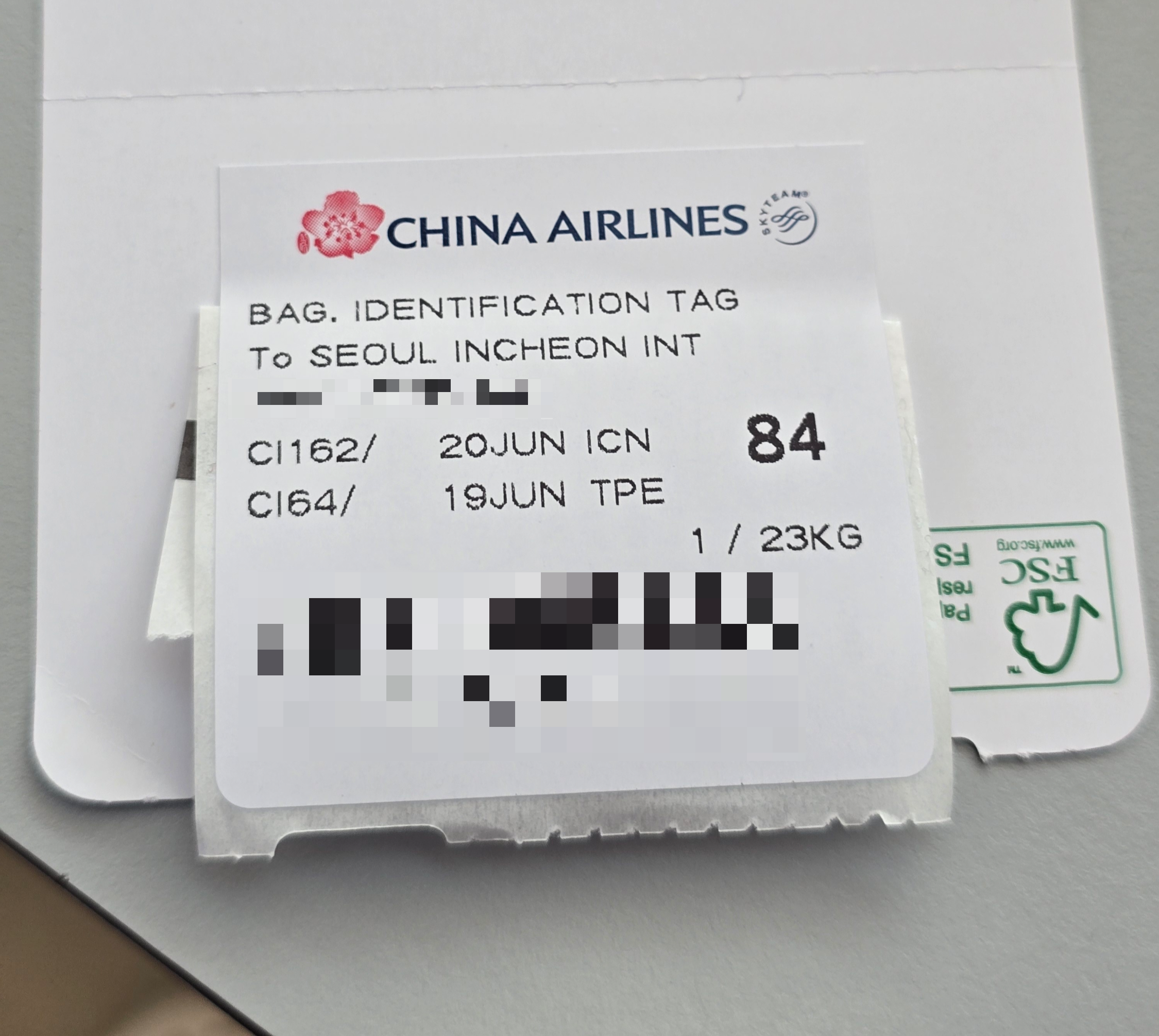 중간 경유공항인 타오위안 국제공항(桃園國際機場)에서 짐을 수령할 필요가 없으며, 최종 목적지인 인천국제공항에서 수령하면 됐다.