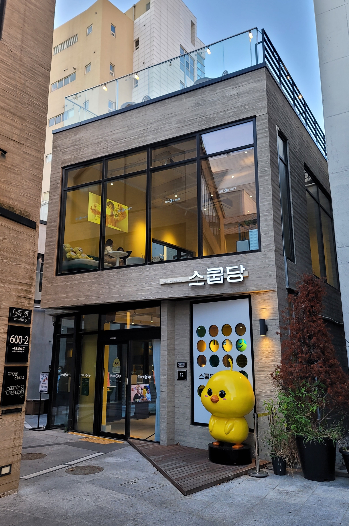 2층짜리 건물이며, 3층에는 루프탑 좌석도 있다.